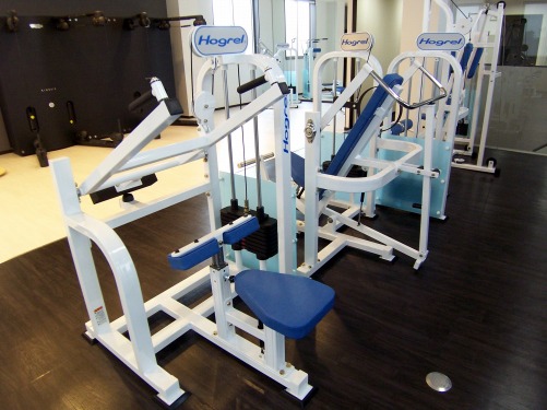 “患者さん”だけでなく、KOSMIでは会員制のフィットネスとして利用できます。 ラグビー、柔道、バスケットなど相手とコンタクトのある競技の選手には、体を大きくする必要があるため、コンピュータ管理されたテクノジムのマシンを使ったストレングストレーニングを中心にメニューを組みます。 |