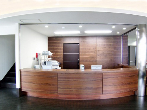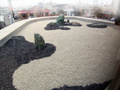 内装はSHSさんのご協力で、落ち着いた雰囲気の待合室を作りました。玄関の屋根(キャノピー)の上に、枯山水様式の庭園を作りました。