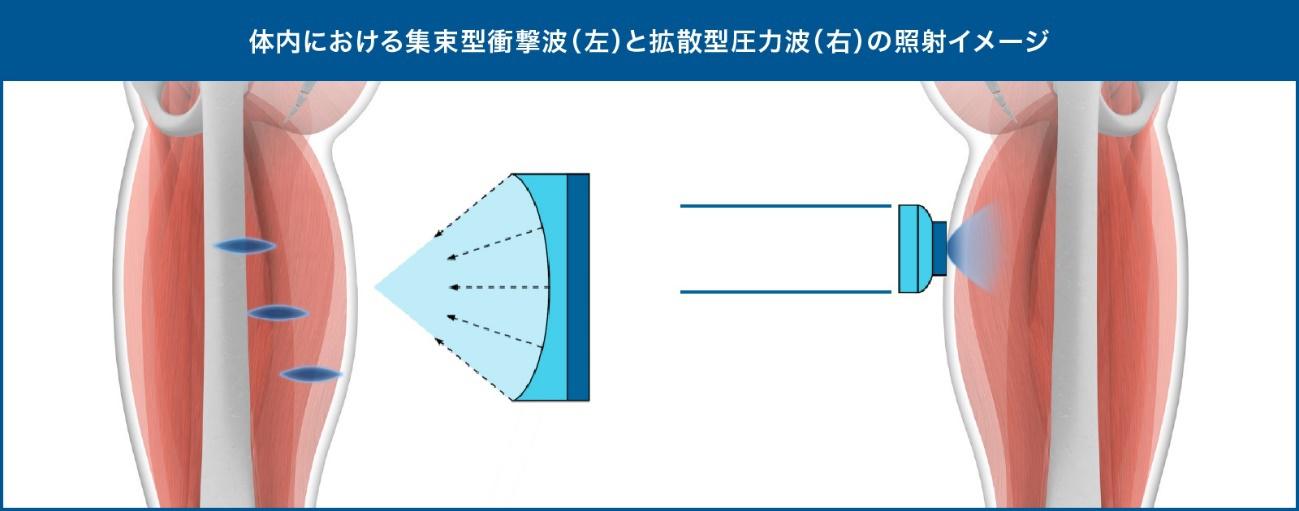 は、衝撃波を患部に集中して照射することができ、優れた即時除痛効果があります。